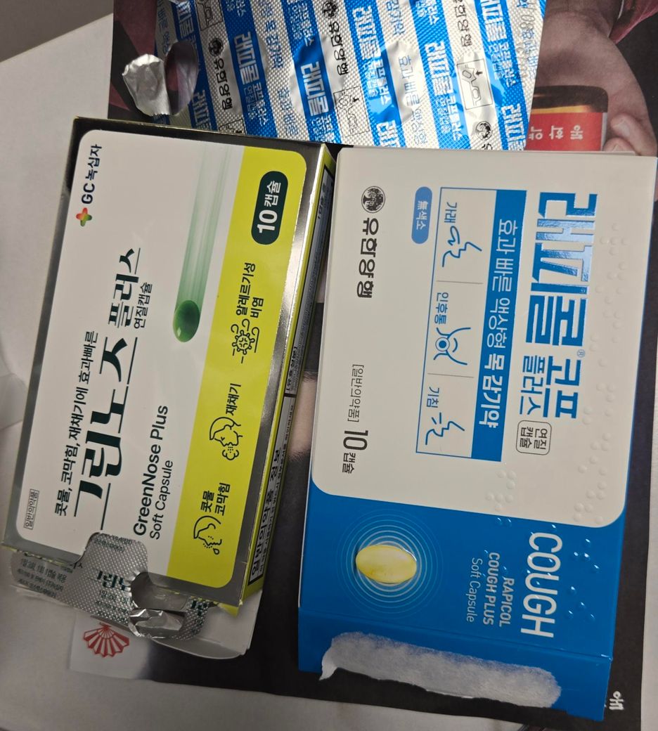 목감기 증상이 심한 경우가 아니라면 두 약을 모두 1캡슐씩 복용하시면 되고, 만약 목감기 증상이 심하며 코감기 증상은 콧물 증상만 있고 코막힘이 없는 경우에는 래피콜 코프 플러스만 2캡슐 복용하셔도 콧물 증상에는 효과를 보실 수 있습니다