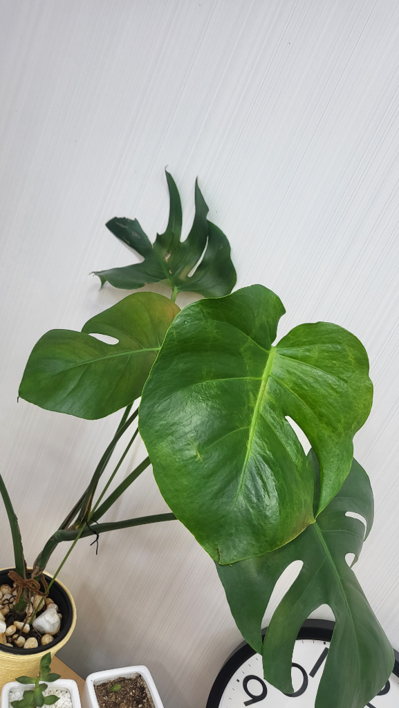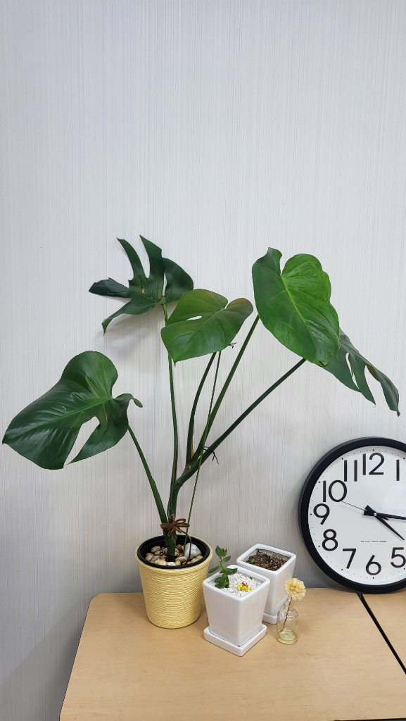 사진상으로 보면 몬스테라 크기에 비해 화분이 작아보입니다.. 조금더 큰 화분에 옮겨 심을 필요가 있어보입니다.