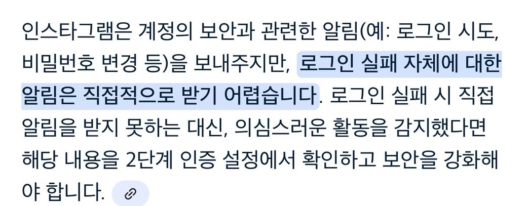 인스타 2단계 인증을 활성화 시키고 누군가 저의 아이디와 비번을 입력 했을 때 비정상적인 로그인 시도라고 뜨고 2단계 인증을 하지않고 누군가가 비번을 틀리기만 하고 로그인을 하지 못한 경우에는 기재한 사진에 적힌 글 처럼 알림이 오지 않나요?
