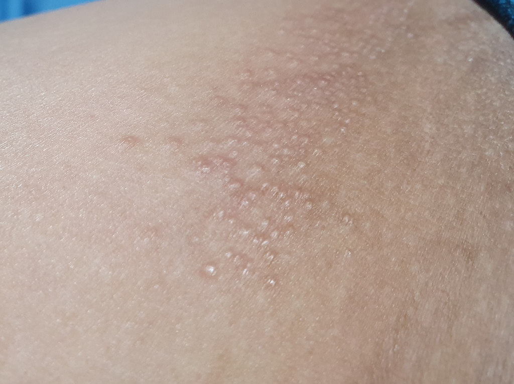 허벅지 안쪽 사타구니 근처에 좁쌀모양의 두드러기가 심하게 생겼다면