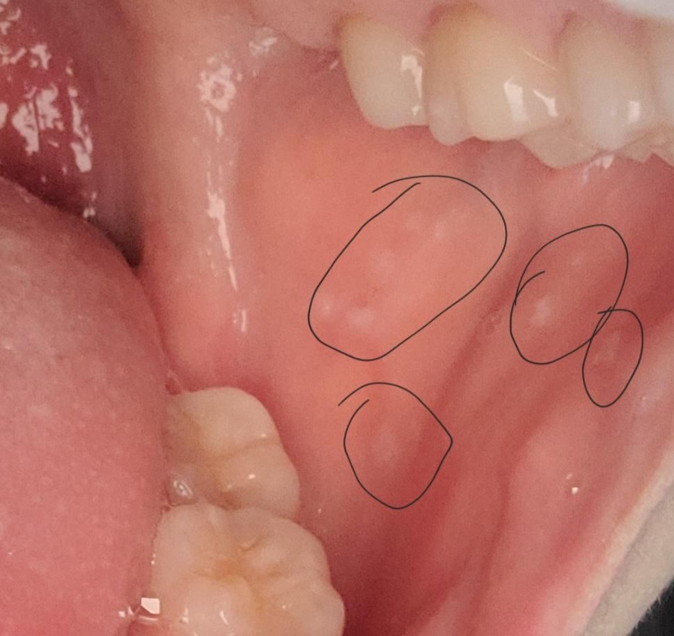 현재 설명하신 양상만 보면 구강암 가능성은 낮은 쪽에 더 가깝습니다. 혀 옆과 입안 양쪽 점막에 갑자기 여러 개의 흰색 병변이 동시에 생긴 경우는, 암보다는 물리적 자극이나 일시적인 염증 반응에서 훨씬 흔하게 나타나는 형태입니다. 특히 단단하고 차가운 얼음 섭취, 치아와의 반복 마찰, 무의식적인 볼 씹기 등이 있으면 점막 표면이 부분적으로 벗겨지면서 하얗게 보이거나 오돌토돌한 촉감이 생길 수 있습니다.