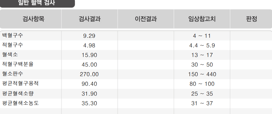 건강검진 혈액검사에서는 특별한 내용은 관찰되지않습니다.