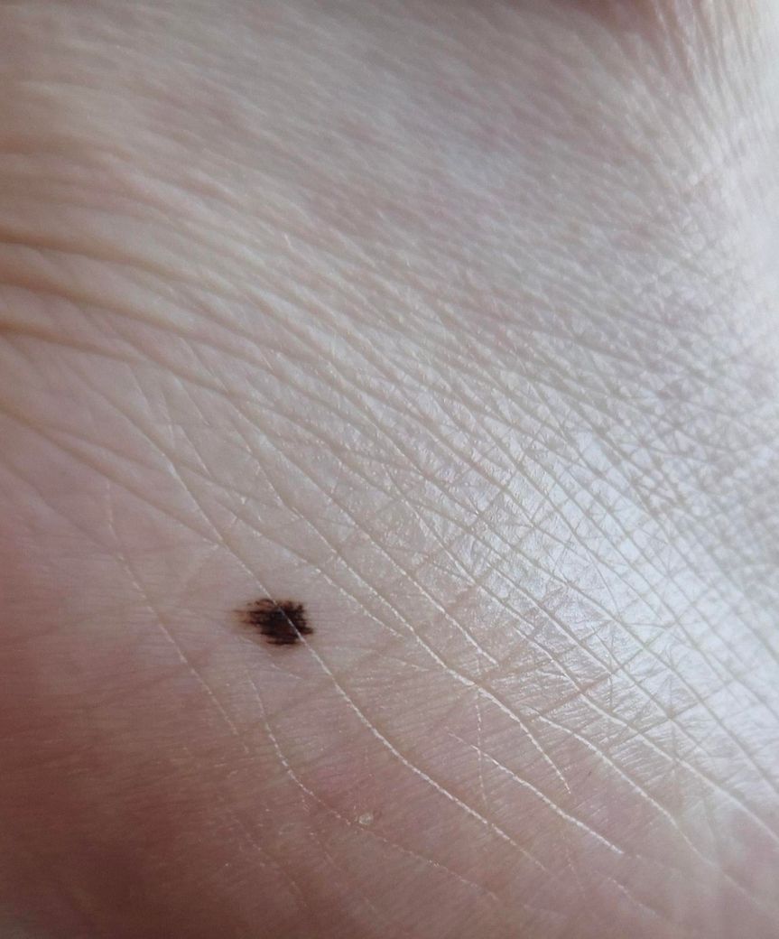 보통 점이 다양한 색조를 띠는 경우, 비대칭성을 보이는 경우, 경계가 불분명한 경우, 주변 색소침착이 있는 경우에는 흑색종을 의심해 볼 수 있어요.