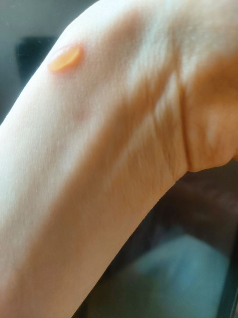 원인을 정확히 추정하기는 어려우나 수포가 저명한 상태이고 밴드로 덮어두시는게 좋겠습니다. 수포가 터진다면 후시딘이나 마데카솔같은 상처연고를 발라주시기 바랍니다.
