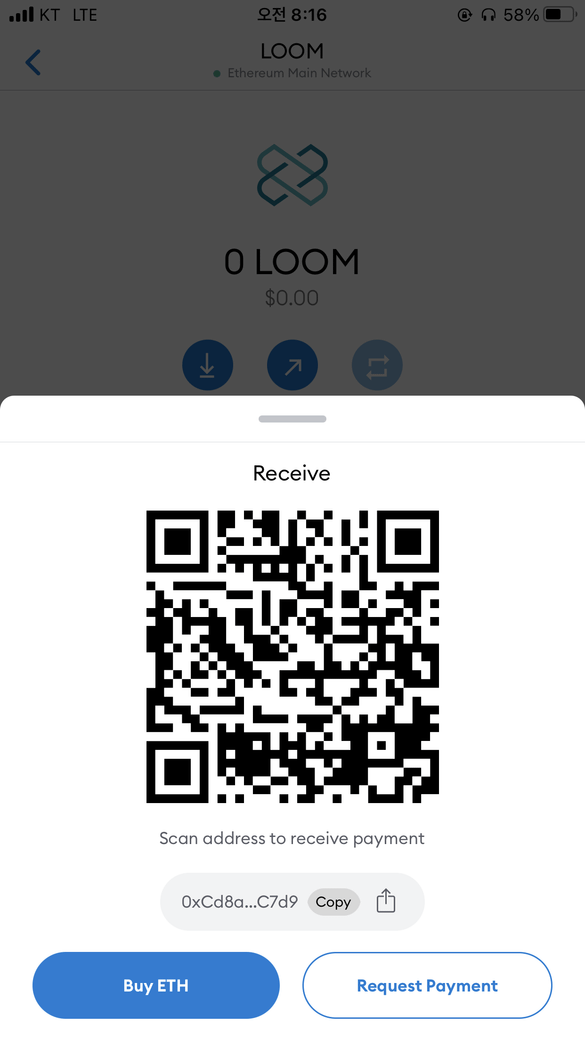 질문자님 지갑주소를 이더스캔으로 검색해봤더니 정상적으로 입금 반영이 된것으로 나옵니다.