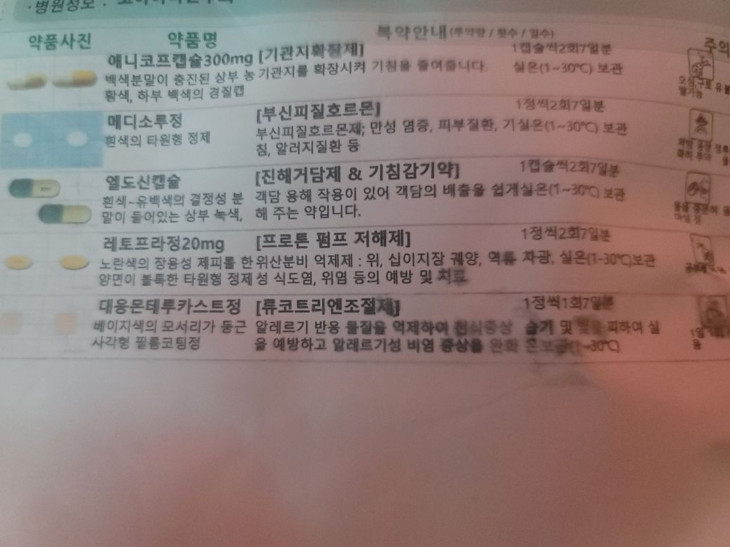 후두염약,기관지넓히는약,발목 염증 완화 약