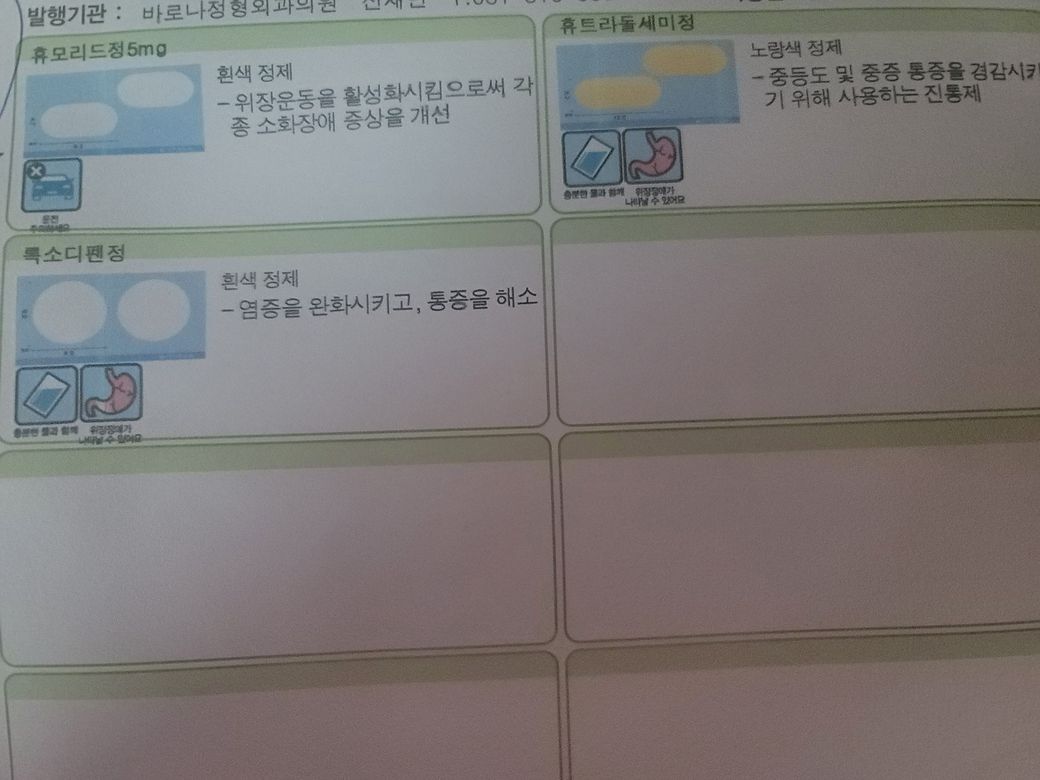 첫번째 사진의 처방약은 진통제와 위장약이므로 통증이 없다면 복용하지 않으셔도됩니다.