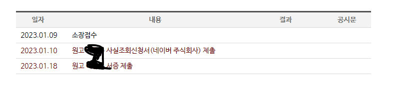 2. 첨부된 파일상의 빨간글씨는 원고가 네이버에 사실조회신청서를 제출하고, 서증을 제출했다는 것입니다.