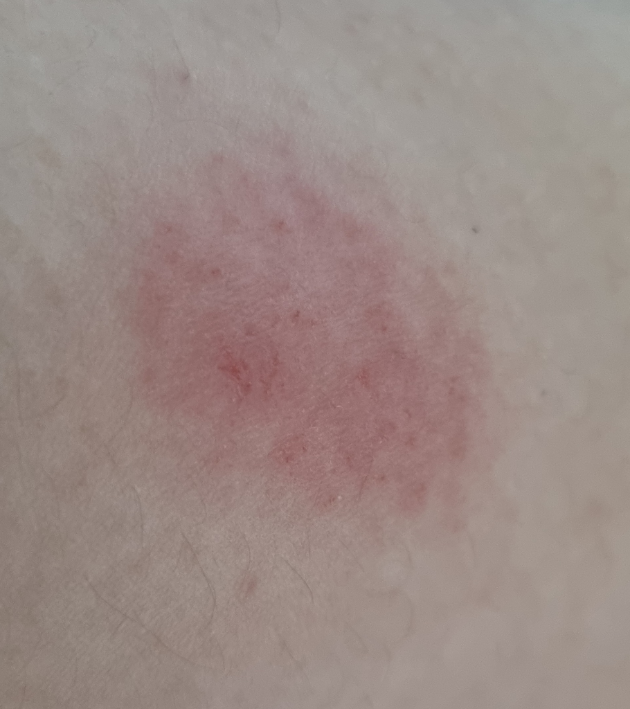 샤워하고 시간이 지나고 아무것도 안바르면 다른피부보다 건조한것 처럼 피부가 거칠어지고 간지러워서 긁으면 저렇게 피부가 빨개짐니다.그리고 연고 바르고 좀 있으면 다시 피부가 거칠어짐니다.