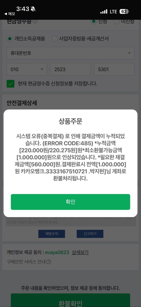 ㅡ사진 처럼 떠서 환불이 안되고 56만원 입금하고 다시 100만원 환불 받으라는데 56만원 없는데 해결 방안이 없을까요 이거 사긴가요 돈 돌려 받아야 되는데 도와주세요