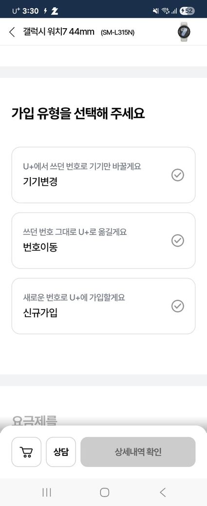 갤럭시워치를 보고잇는데 보기가 3개잇더라구요? 각각 무슨뜻이예요? 기기변경 번호이동 신규가입 3개있는데 뭐가뭔지...