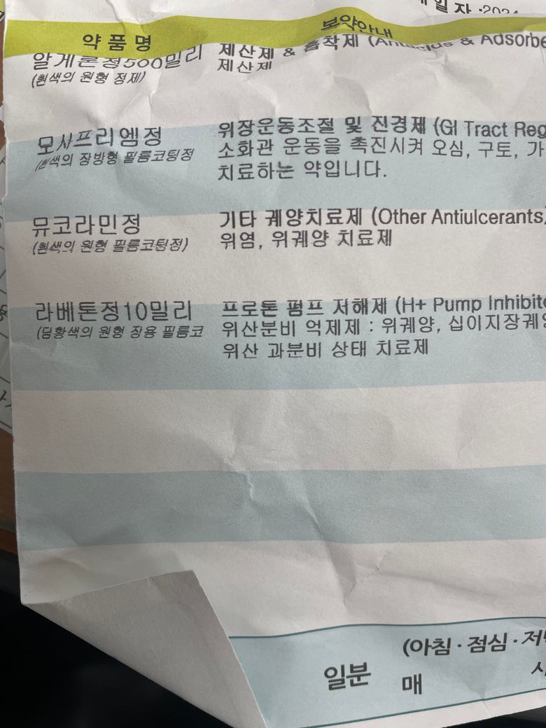 속쓰림때문에 위장약을 먼저 처방받은 상태고