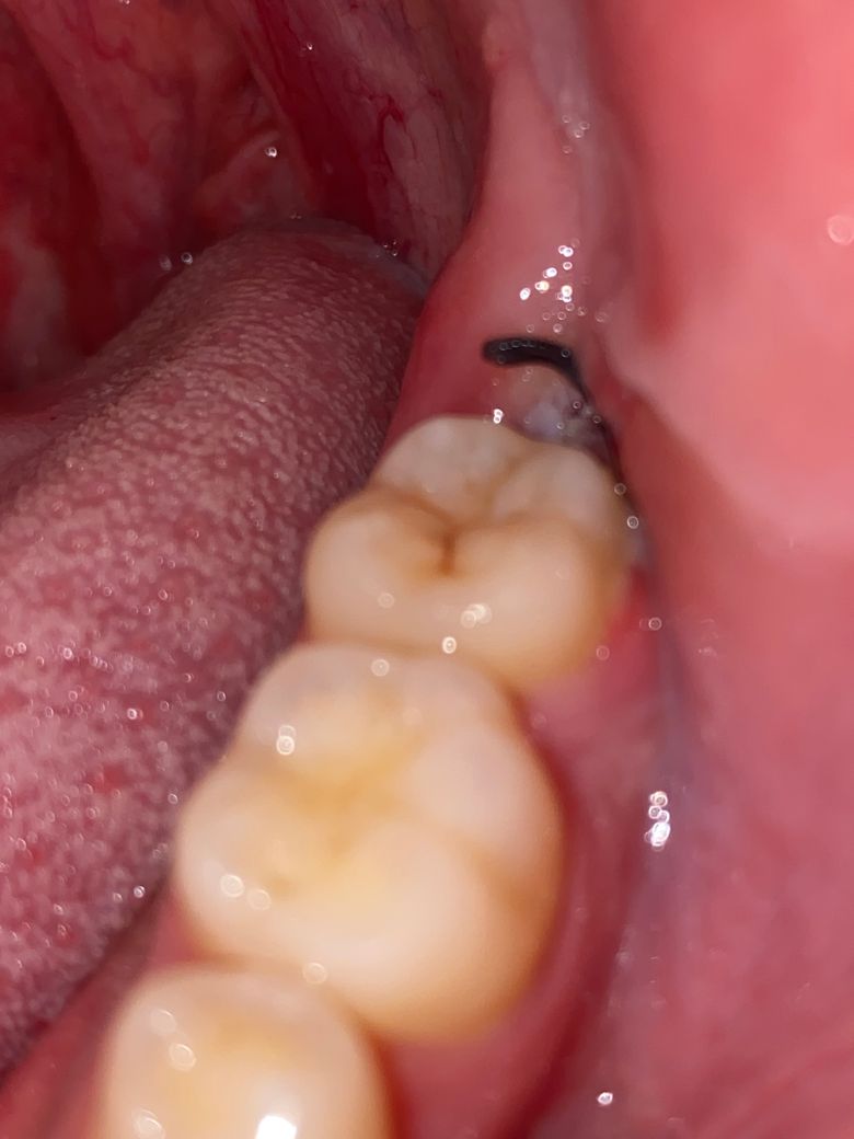 사랑니 발치 부위가 사진상으로 아주 잘 보이지는 않지만 특별히 드라이소켓이 발생한 것으로 보여지는 양상은 아닙니다