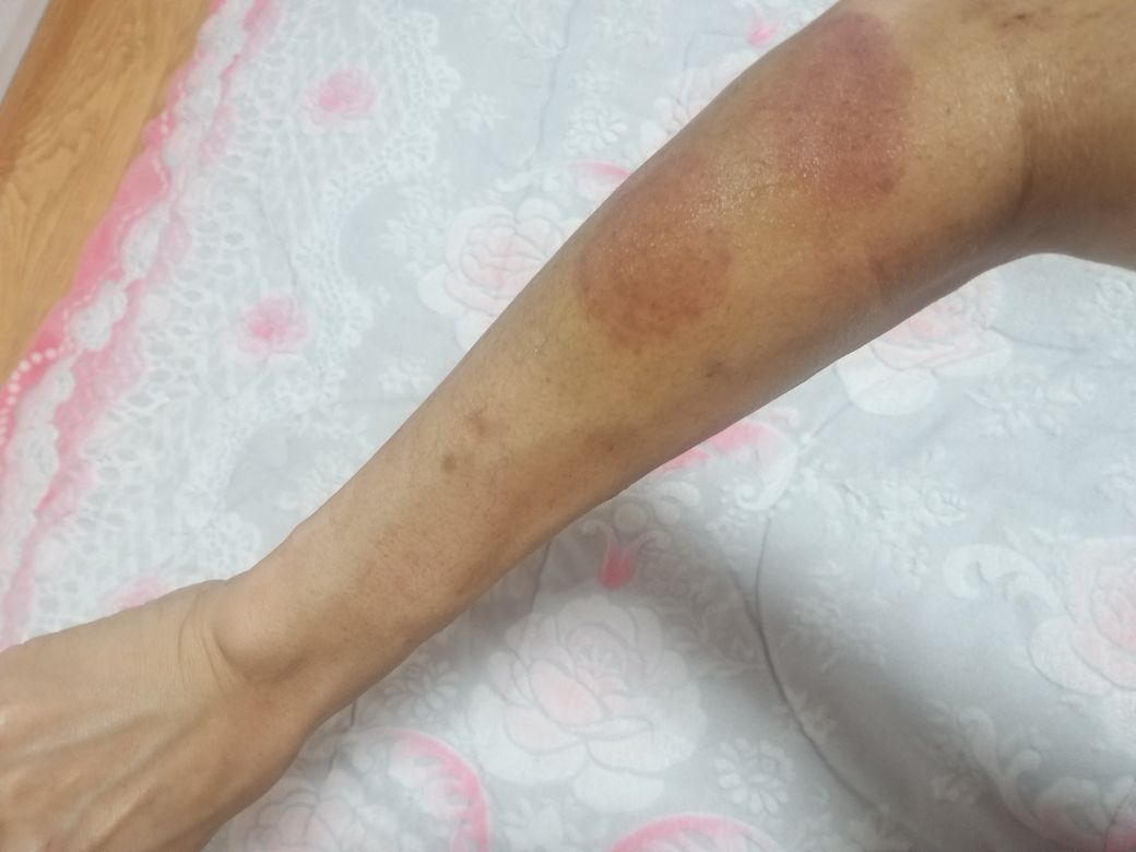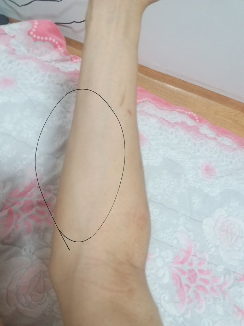 그이후부터 팔이 땡기고 표시된곳.부항자국있는곳