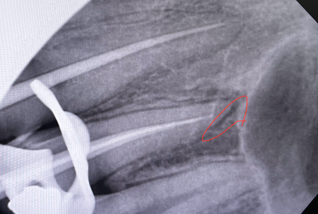 왼쪽 위 어금니와 앞니 사이 치아에 충치가 심해 신경치료를 진행하는 중 x선 사진을 촬영하여 충치균이 치아를 넘어 잇몸 뼈까지 부식시킨 상태라고 의사가 말하였습니다. 그리고 이러한 경우 예후가 좋지 않을 가능성이 높다고 말하였습니다.