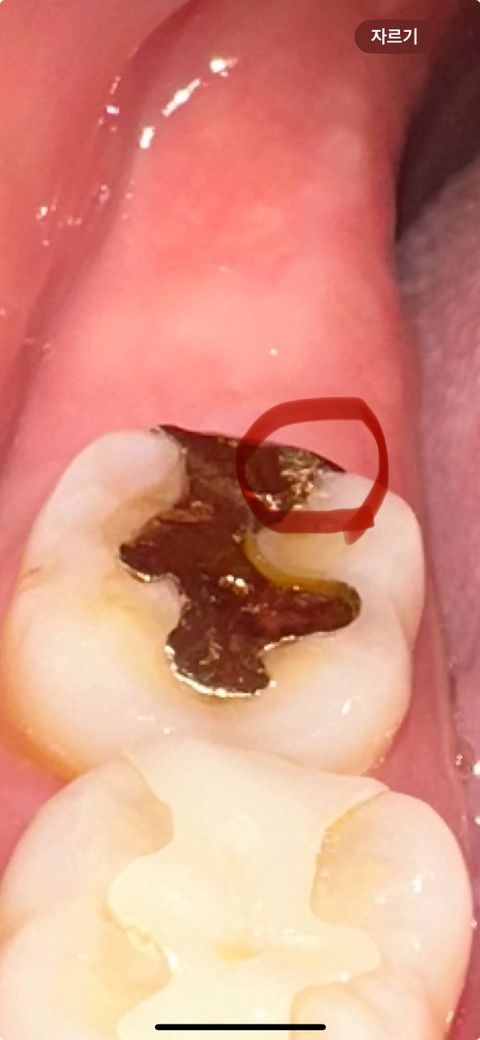 쓰다보니 약간 금 인레이 보철물이 마모가된 것 같습니다 떨어지거나 벗겨진 것은 아니니 걱정하지 않으셔도 됩니다만 치과가서 체크는 해보실 수 있습니다