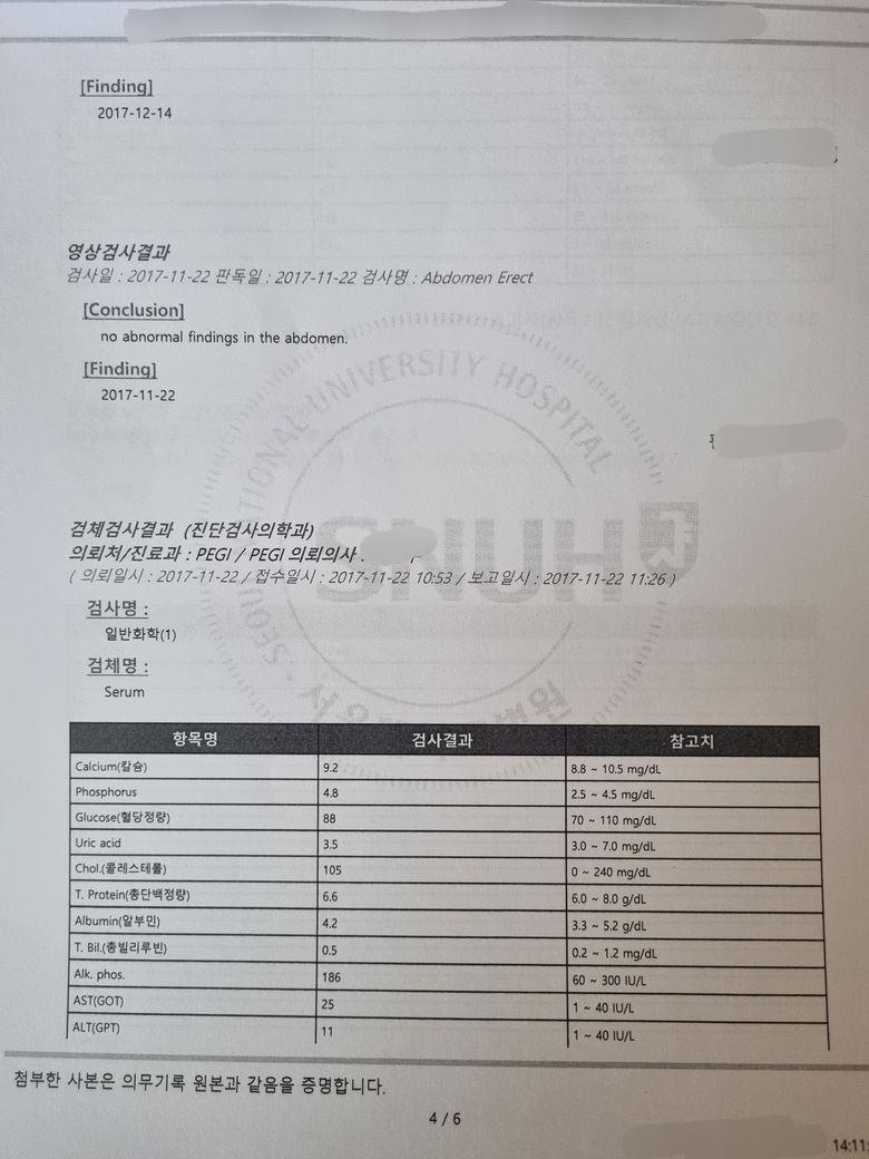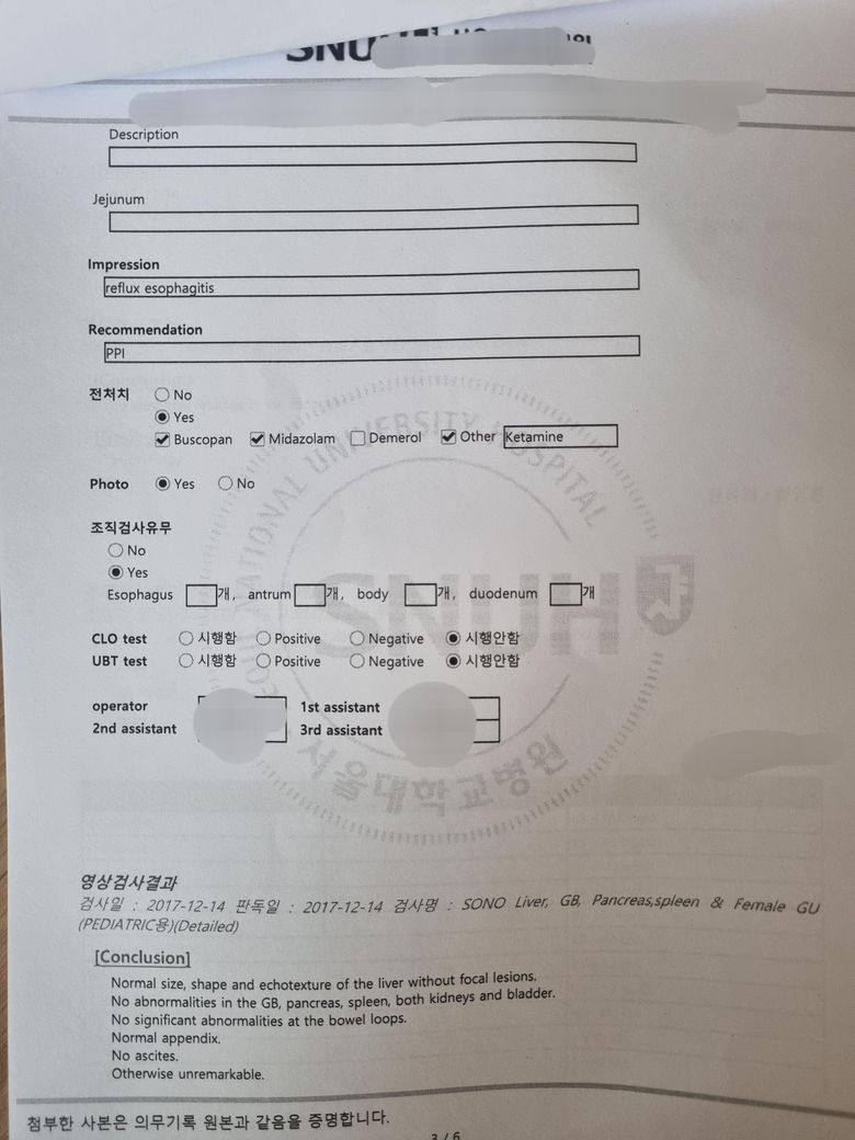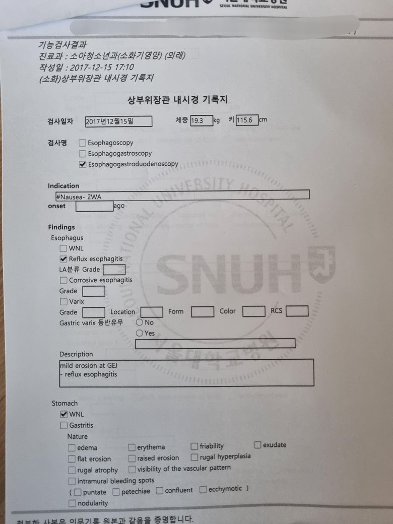 아이가 6살때 헛구역질을 자주해서 위내시경 검사를 받았었는데 바쁘다보니 잊고 살았어요근데 요즘 보험가입하느라 서류떼보니 이런게 있네요