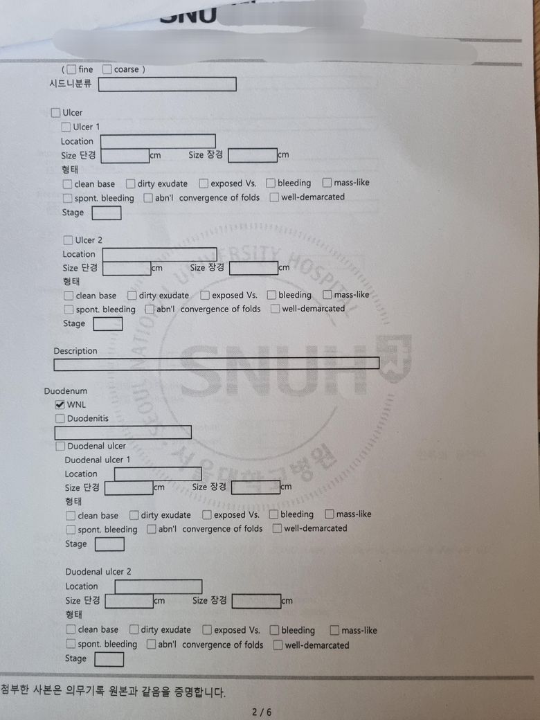 7년전에 위내시경 한 검사지인데 다 괜찮다는 뜻인가요?