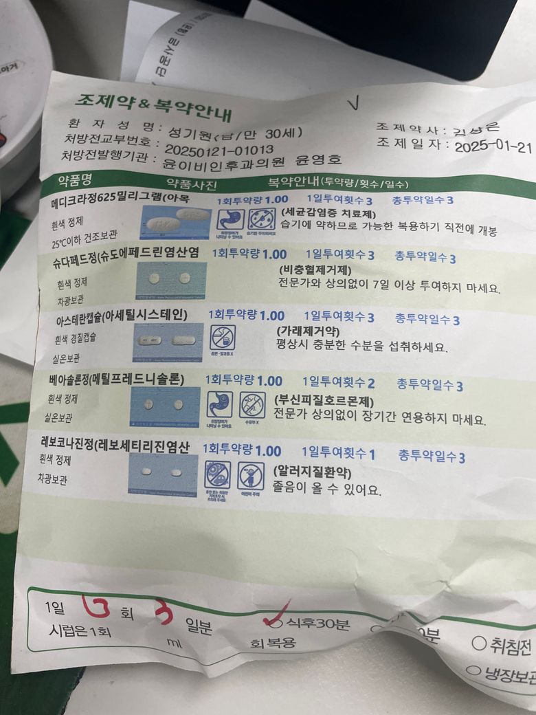 축농증으로 약을 처방 받았는데 오늘 저녁에 술자리가있습니다 현재 처방 받은 약은 3일분으로 사진과 같습니다 아침 점심까지만 약을 먹어도 되나요?? 약은 어제 점심 저녁까지만 복용하였습니다