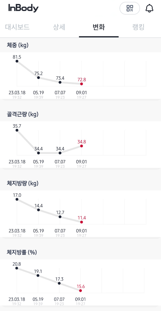 체지방률도 20에서 15까지 감량했습니다.