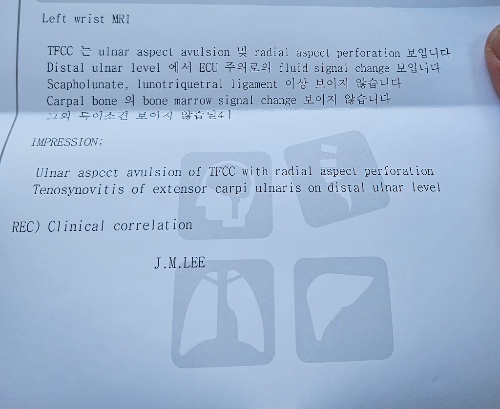 삼각섬유연골복합체 찢어짐 및 힘줄염증 수술요함
