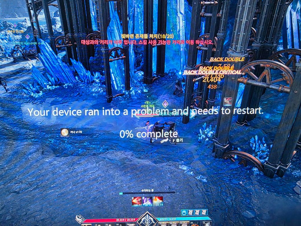 화면의 "device ran into a problem and needs to restart"라는 메시지는 시스템이 스스로 보호하기 위해 강제로 멈췄다는 뜻입니다. 게임 성능을 담당하는 드라이버가 꼬였을 때 가장 흔하게 발생합니다.아니면, 게임은 PC 자원을 많이 쓰기 때문에 CPU나 그래픽 카드가 너무 뜨거워지면 안전을 위해 전원을 차단합니다. 그래서,사용 중인 그래픽 카드(NVIDIA 또는 AMD)의 공식 홈페이지에 가서 최신 버전의 드라이버를 내려받아 설치해 보세요. 기존 드라이버와의 충돌이 해결될 수 있습니다. 아니면 컴퓨터 전원을 완전히 끄고 본체를 열어 꽂혀 있는 메모리 카드를 뽑았다가 다시 꽉 소리가 나게 꽂아보세요. 단순 접촉 불량으로 해결되는 경우가 많습니다.