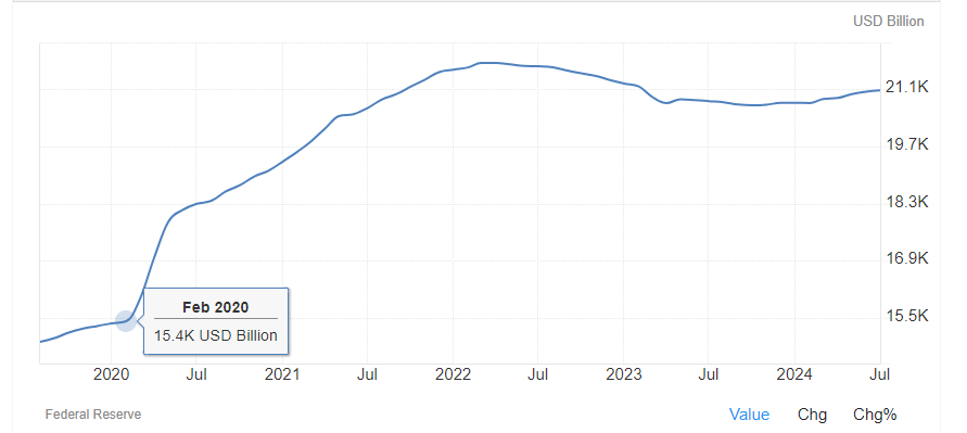 미국채의 만기는 사실상 현재로서는 중요하지 않은 것이 미국은 채권을 추가로 찍어내어 이러한 만기를 커버하기 때문입니다. 그리고 달러 발행량은 아래 그래프를 참고부탁드립니다. (M2 통화량, 약 6조 달러(6K billion))