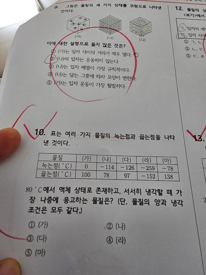 (나) 80°C에서 기체