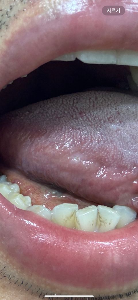 사진상으로 설암은 아닌 것으로 보이며, 구내염증상인 것으로 보입니다.