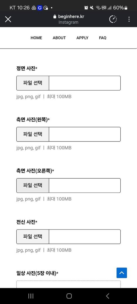 한 오디션에 지원을 할려는데 사진 업로드가 계속 안되는 상황이 발생하고 있습니다.혹시 해결 방법을 아시는 분은 꼭 답변을 달아 주십시오