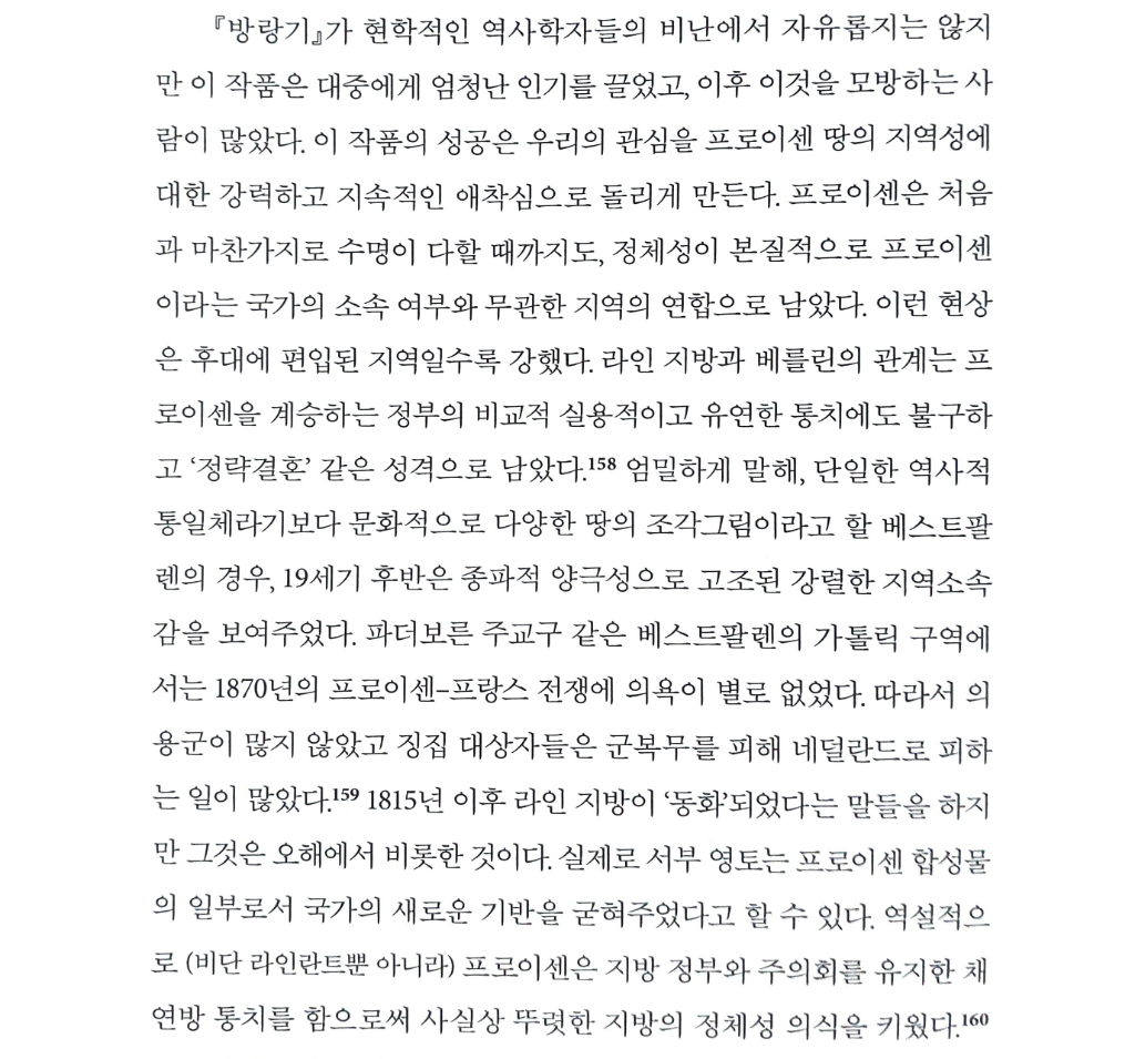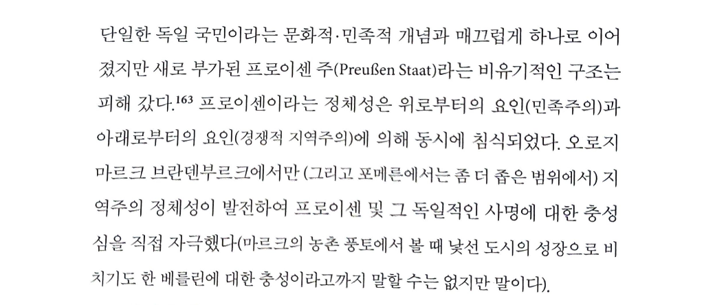 프로이센에 거주하는 사람들은 자신들이 프로이센에 속한 국민/주민이라는 정체성 대신 프로이센 안의 별개의 지역에 속했다는 정체성을 가졌다는 내용인데요..! 이 다음 내용을 읽어보면 구 브란덴부르크 변경백령 당시의 브란덴부르크 주의 주민들만 프로이센에 대한 지역주의 정체성이 발전하였다고 하는데 여기서 말하는 브란덴부르크의 지역주의는 브란덴부르크와 프로이센을 하나로 묶어서 이해해야 할까요? 사전적 정의로 지역주의는 지역에 대한 자치성과 특수성을 도모한다는 뜻인데 ..