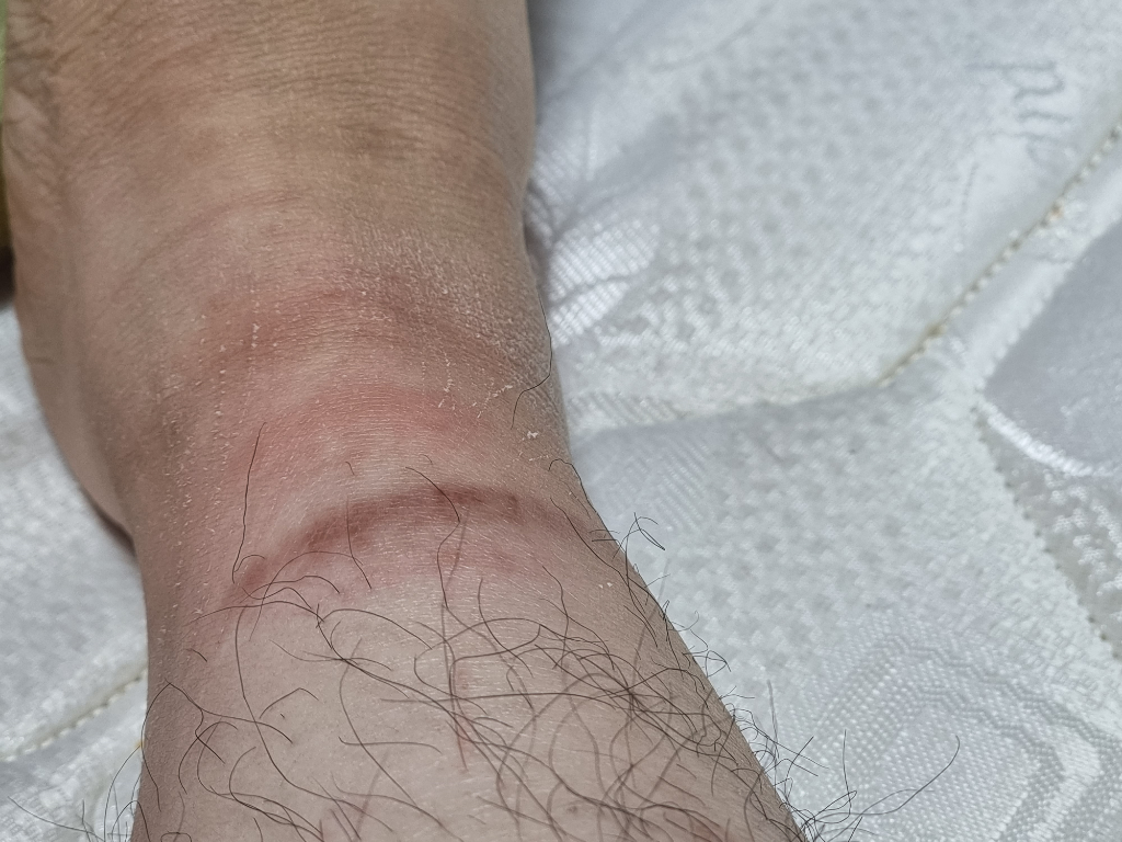 부종은 심해보이진느 않고 피부가 많이 건조해보입니다. 가려움은 압박에 의한 증상으로 보이구요. 보습제부터 열심히 바르시고 피부과에 가서 확인을 해 보시기 바랍니다.
