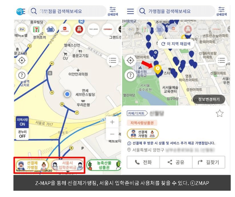 거주지 인근 제로페이 가맹점 확인이 가능하시며 , 서울시 입학준비금 사용처 확인이 가능하오니