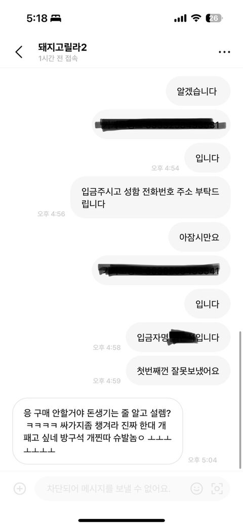 구매하신다고 하더니 정신병자처럼 그냥 저렇게 욕설을 하시더라고요