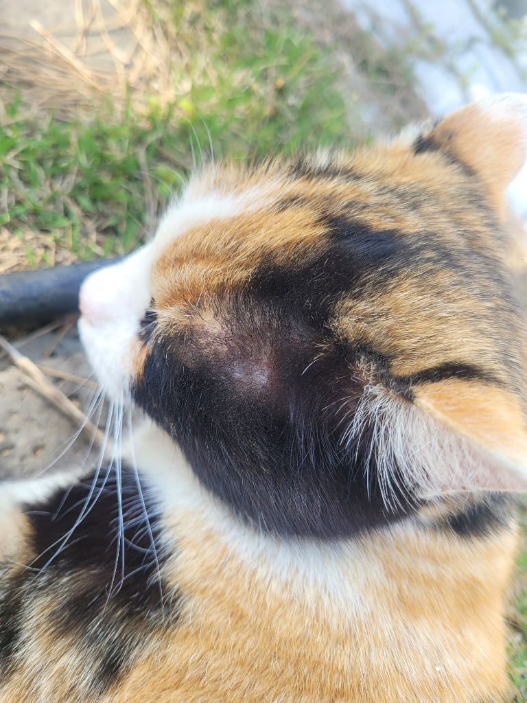 우선 해당 부분 긁지 못하도록 넥칼라 착용해주시고 병원 가셔서 혹시나 곰팡이 감염 여부 확인 위해 배양 검사 해보시는 것을 권유드립니다.