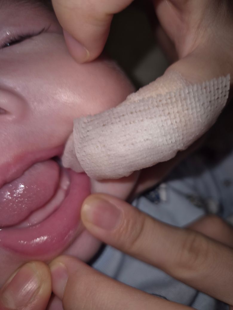 6개월차 아기 잇몸인데 오른쪽 아래 하얀색 점같은게 보여서 문의 남겨드립니다 저 하얀색이 무엇일까요 답변 부탁드립니다 남자아기이며 152일 되엇습니다