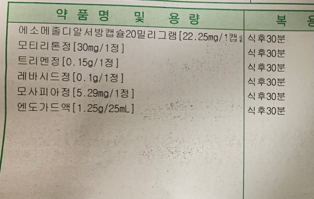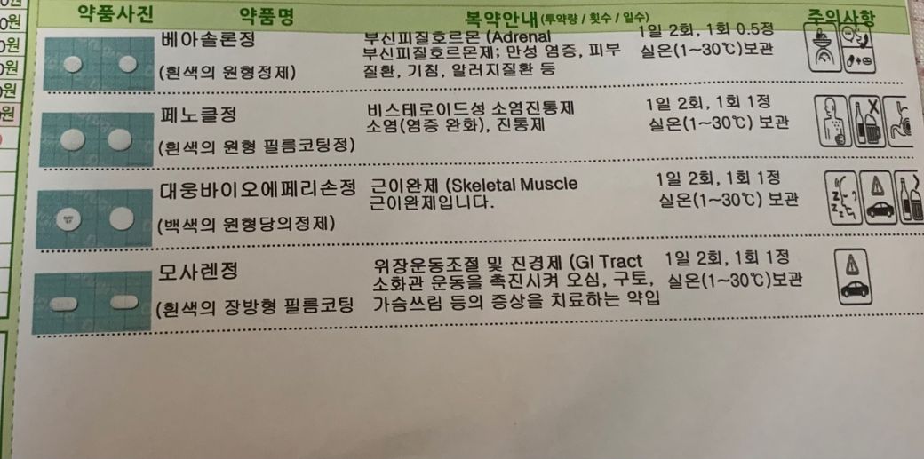 정형외과 약에서 모사렌정은 빼고 복용하셔도 되겠습니다. 내과쪽에서 이미 같은 약으로 들어가있습니다.