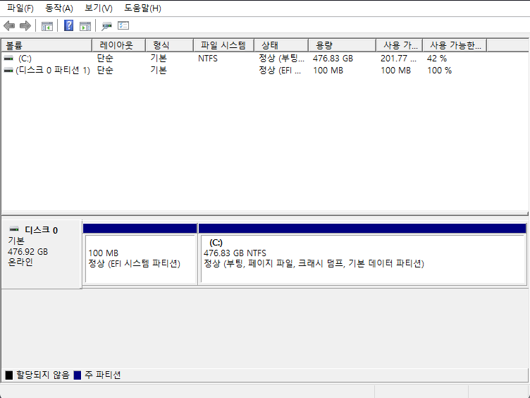 아무래도 파티션이 하나라면 하나에 모두 모여 있어서 기동을 할 때 살짝 속도가 느려질 가능성이 있기는 합니다