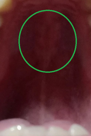 사진상으로는 정확한 평가가 어렵습니다. 다만 표시해주신 부위는 구강 내에서 경구개(hard palate)에 해당하며 딱딱한 뼈입니다. 따라서 단단한 느낌이 들 수 있으나 혹시 주변의 잇몸과 다른 느낌이 든다면 이는 구강 내 연조직 질환일 가능성이 있어 보입니다. 따라서 주변 조직과 너무 이질감이 크다면 지체하지 마시고 치과를 방문하여 해당 부위에 대한 정확한 평가가 필요해보입니다.