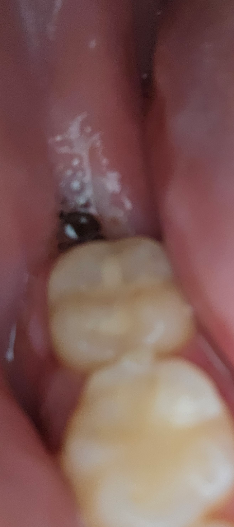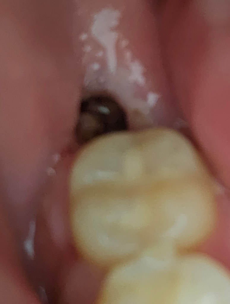 사랑니를 빼고 나서 한달정도는 지나야 잇몸이완전히 치유가 될꺼에요. 까맣게 보이는건 아마 안쪽이 어두워서 저렇게 보이는거 같습니다 .