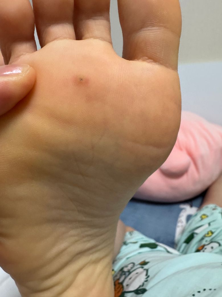 갑자기 발 만지는데 이런 자국이 있어서.. 근데 가운데 있는 점이 가면 갈수록 더 선명해져요 굳은살 인가오..??