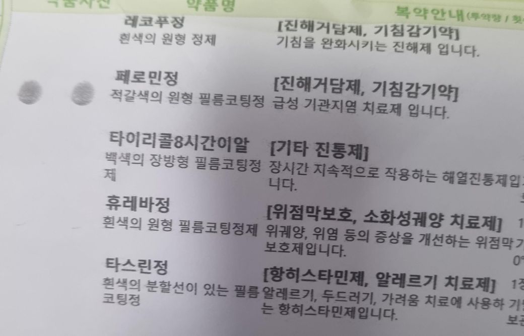 다만 같이 복용했을 때 설사 부작용이 나타난다면 감기약에 포함된 휴레바정을 빼고 복용하는 것을 권장드립니다.