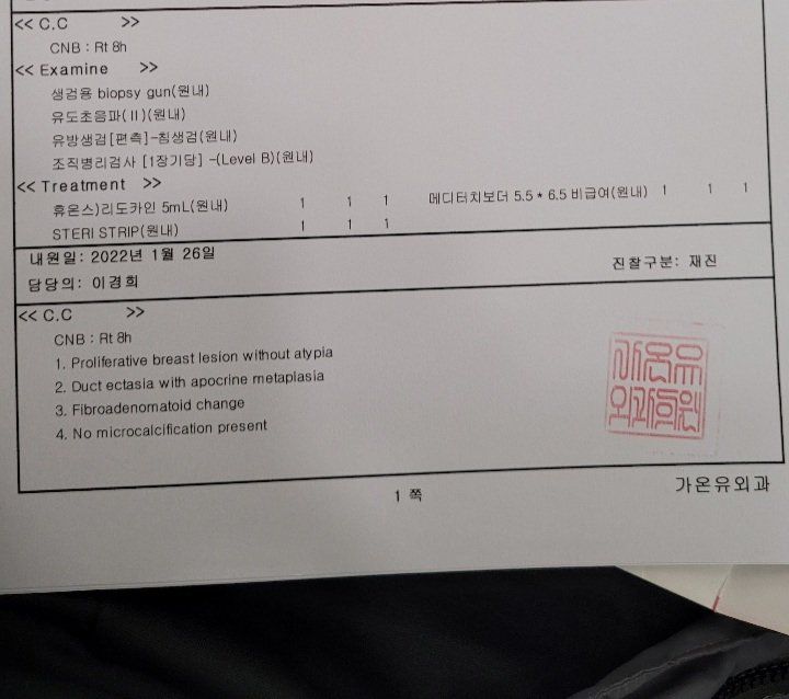 유방 조직검사 결과지 해석 좀 부탁드립니다ㅜㅜ