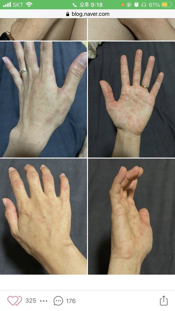 내가아닌 내딸이 1차접종하고 두드러처럼 빤간반점 이 전체적으로 퍼져있는상태