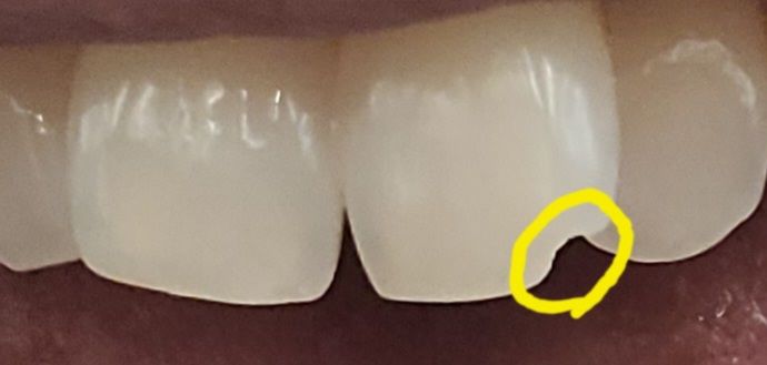 대문니 모서리 파절 레진치료 이게 맞나요?