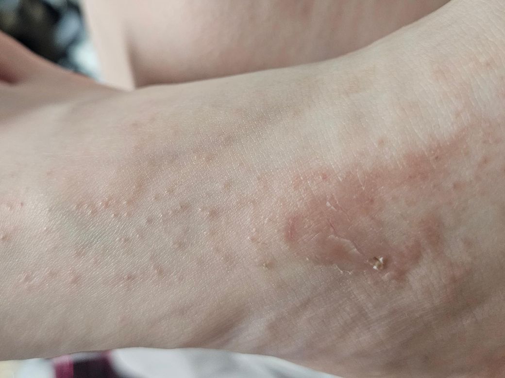 장화신고 나갔다가 쓸렸었는데 오늘 보니까 그 상처 주위로 두드러기 같은게 보여요 이거 왜그런거에요? 원인과 어떤 증상인지 궁금합니다