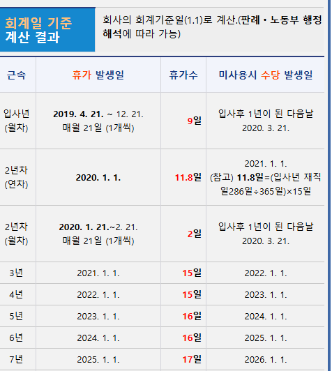 회계연도 기준 연차 제도를 사용하고 있더라도,