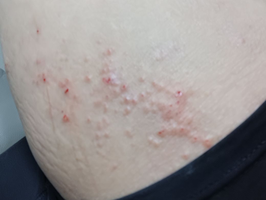 어렸을때부터 아토피가 있긴 했습니다 자꾸 나서 궁금해서 여쭤봅니다 허벅지뒤쪽입니다 일단 저게 수포인지 두드러기 알러지인지가 궁금하고 보시기에는 일반적인 피부염일지 헤르페스일지 궁금해서 사진찍어올려봅니다 아시는분은 답변 부탁드립니다...ㅜ