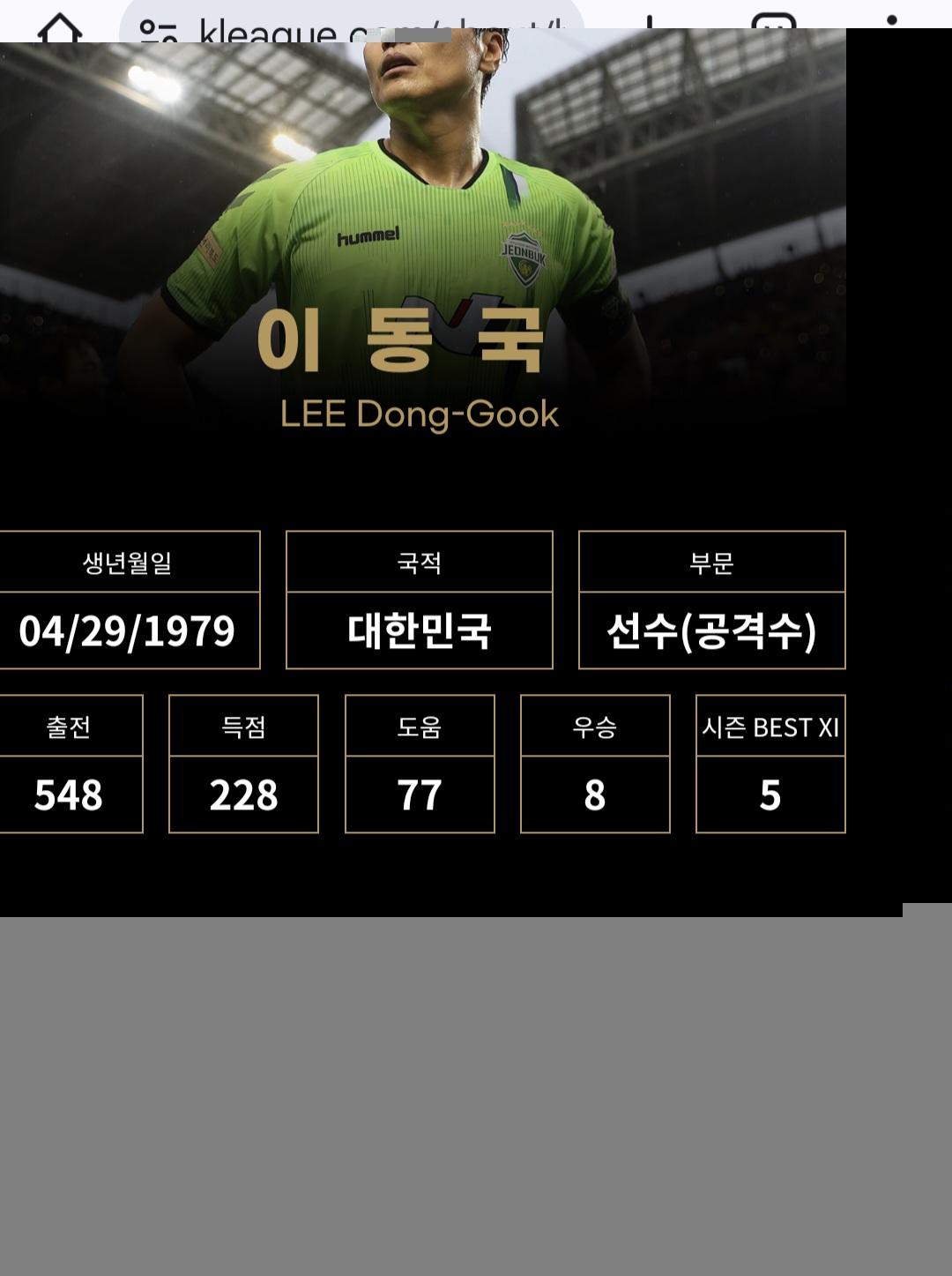 K리그의 공식기록으로 548경기 출전 228골을 기록중입니다.