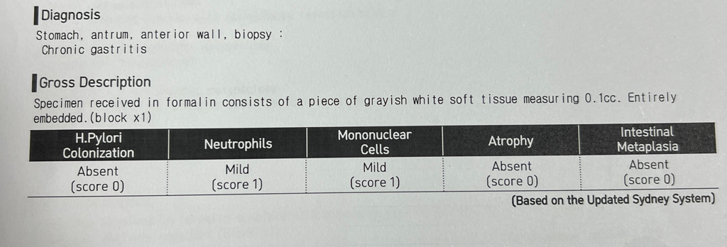 동반된 헬리코박터균도 없는 것으로 확인됩니다.